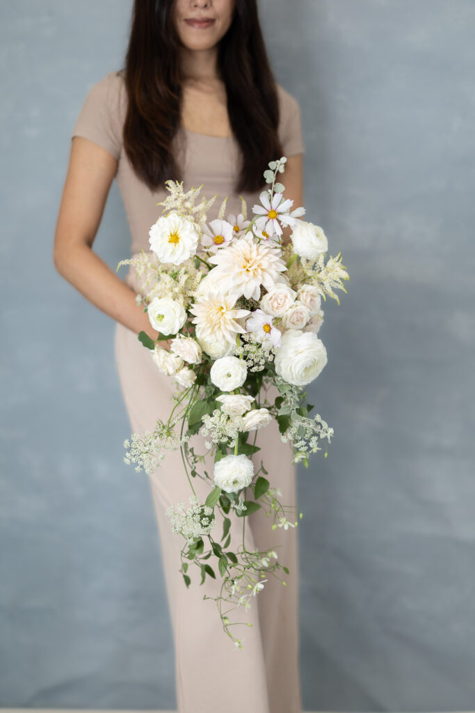 I usually had a couple of brides each year asking for cascading bouquets. Even though I don’t receive these orders as often as round bouquets, I’ve always loved creating them even when I didn’t feel fully confident.